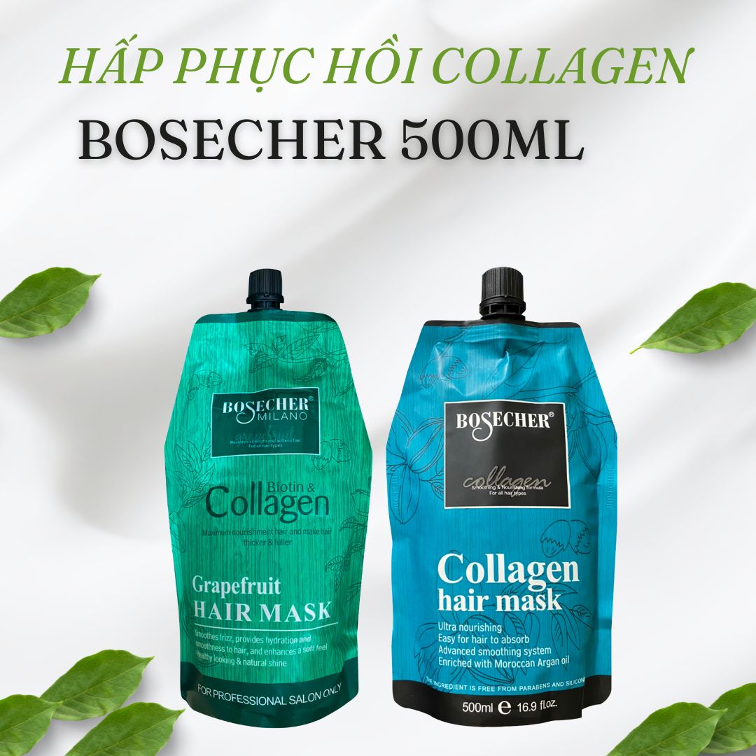 - Hấp phục hồi Biotin Collagen Bosecher thiên nhiên hóa chiết xuất từ than tre tạo ra nguồn keratin nguồn gốc thực vật bổ sung chất sừng cho tóc, tăng cường liên kết cấu trúc tóc, giúp mái tóc dẻo dai và đàn hồi, kích thích mọc tóc. Ngoài ra phục hồi cung cấp collagen cho tóc lão hóa hư tổn do sử dụng hóa chất và hương thơm bền lâu còn có khả năng chống nhiệt, chống tia UV, ngăn ngừa lão hóa, ngăn gãy rụng.