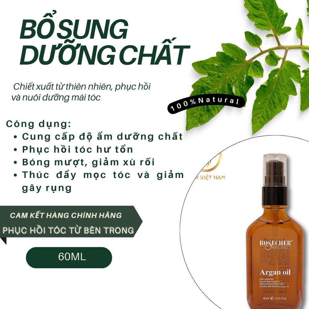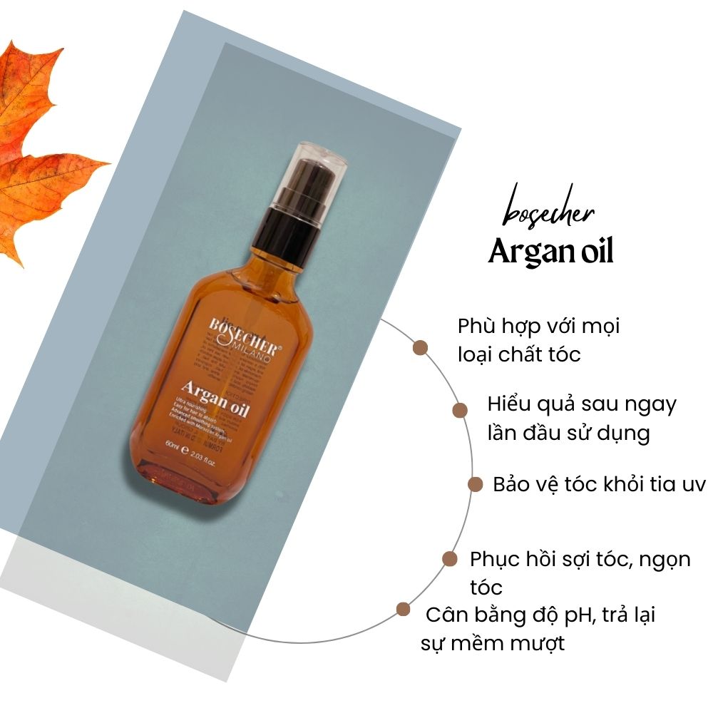 Tinh dầu Argan Oil Bosecher mùi thơm sang trọng, bảo vệ tóc khỏi các tác động bên ngoài như khói bụi, nắng, nóng,…