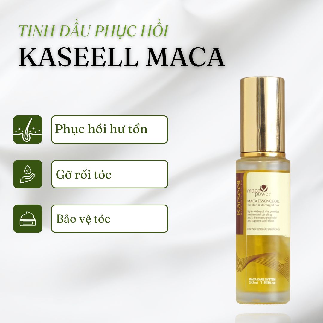 - Tác dụng đầu tiên của tinh dầu dưỡng Karseell Maca Essence đó chính là giúp các sợi tóc trở nên bóng mượt & mềm mại hơn, xóa tan đi những lo âu về một mái tóc xơ rối và dễ gãy rụng. Đặc biệt hơn, nó còn có khả năng kiểm soát và gỡ rối cho mọi chất tóc, thậm chí cả tóc xoăn.